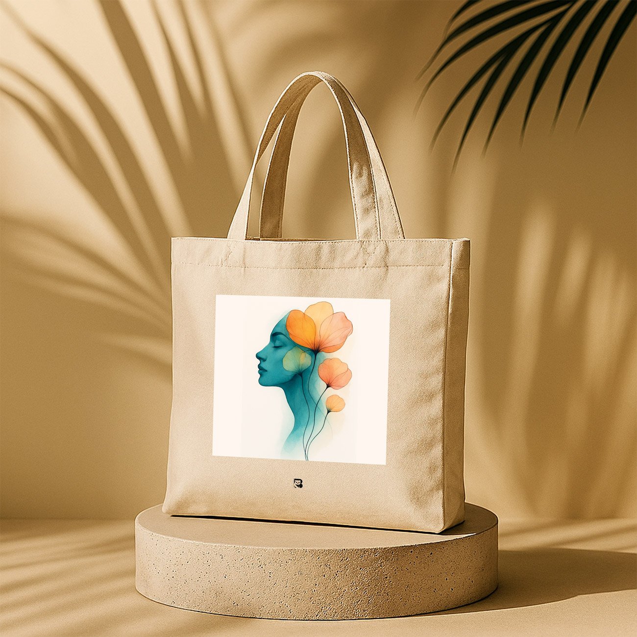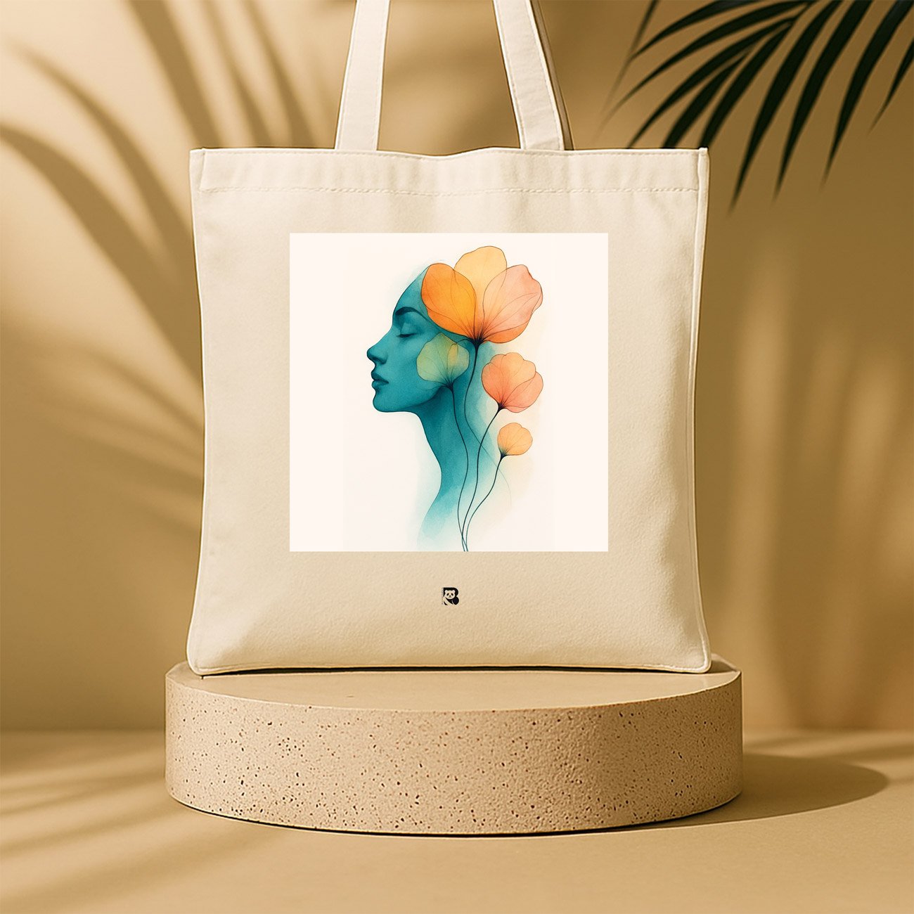 Mindflower is a surreal meditation on thought, transformation, and feminine clarity. A stylized blue profile blends seamlessly into translucent orange and yellow blooms—symbolizing ideas that blossom from within. The fluid composition evokes both introspection and radiance, set against a warm beige canvas that complements its ethereal tone. Crafted with eco-conscious materials and minimalist elegance, this tote is for those who carry imagination, emotion, and quiet power in every step.