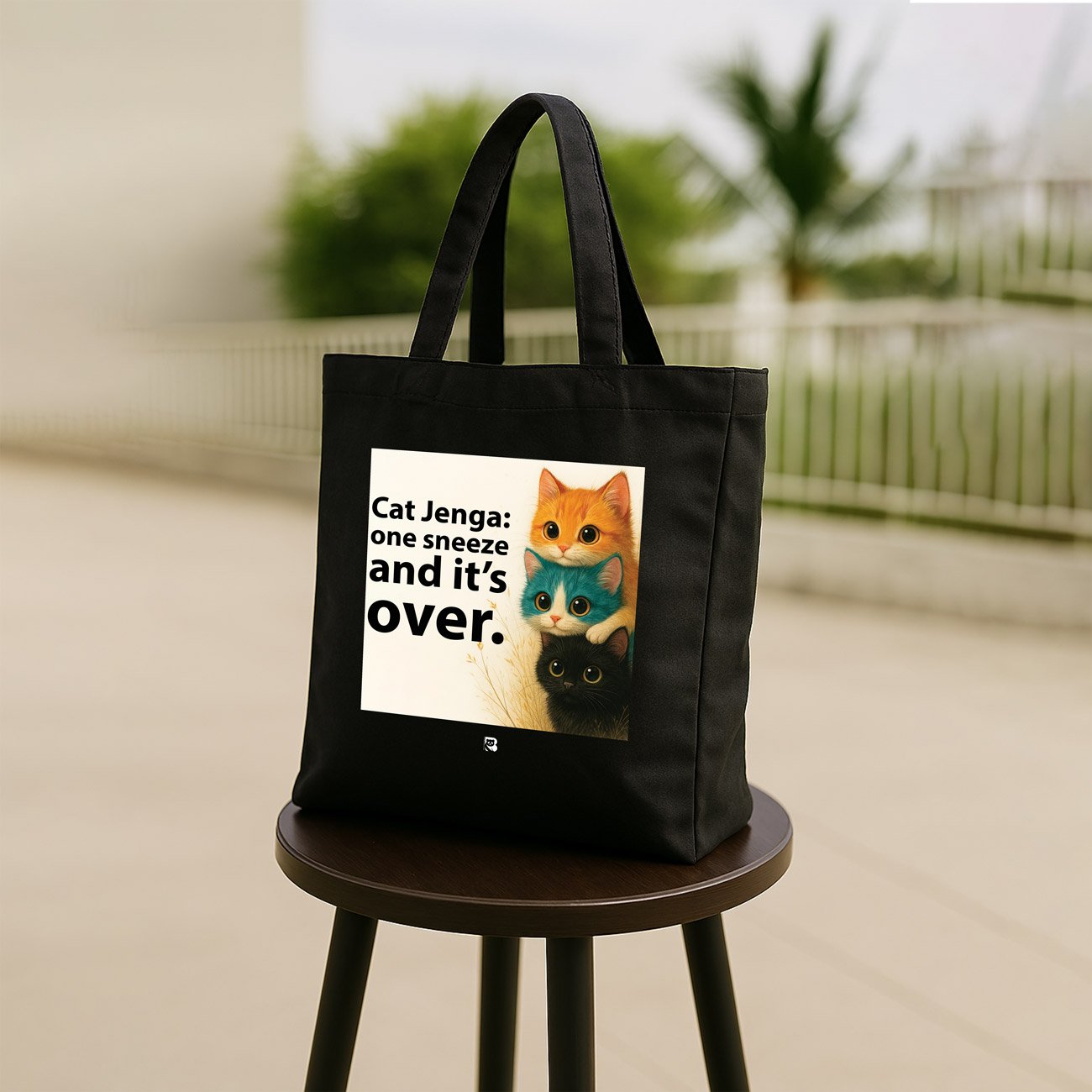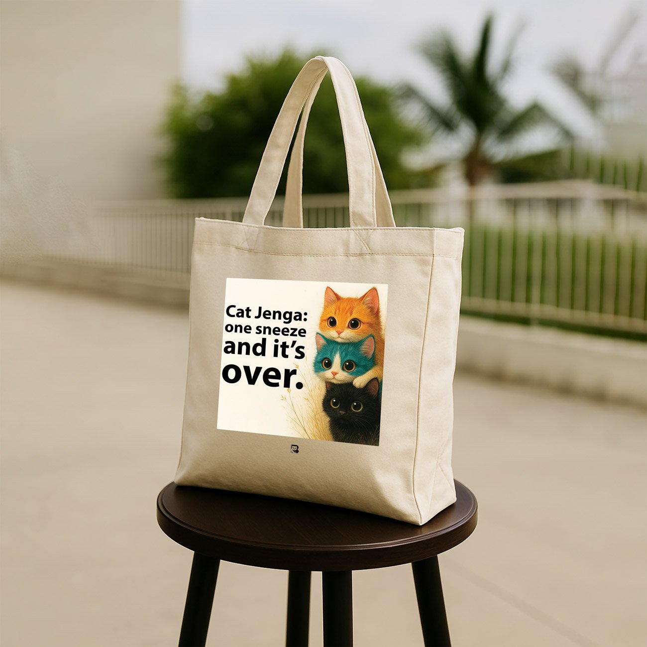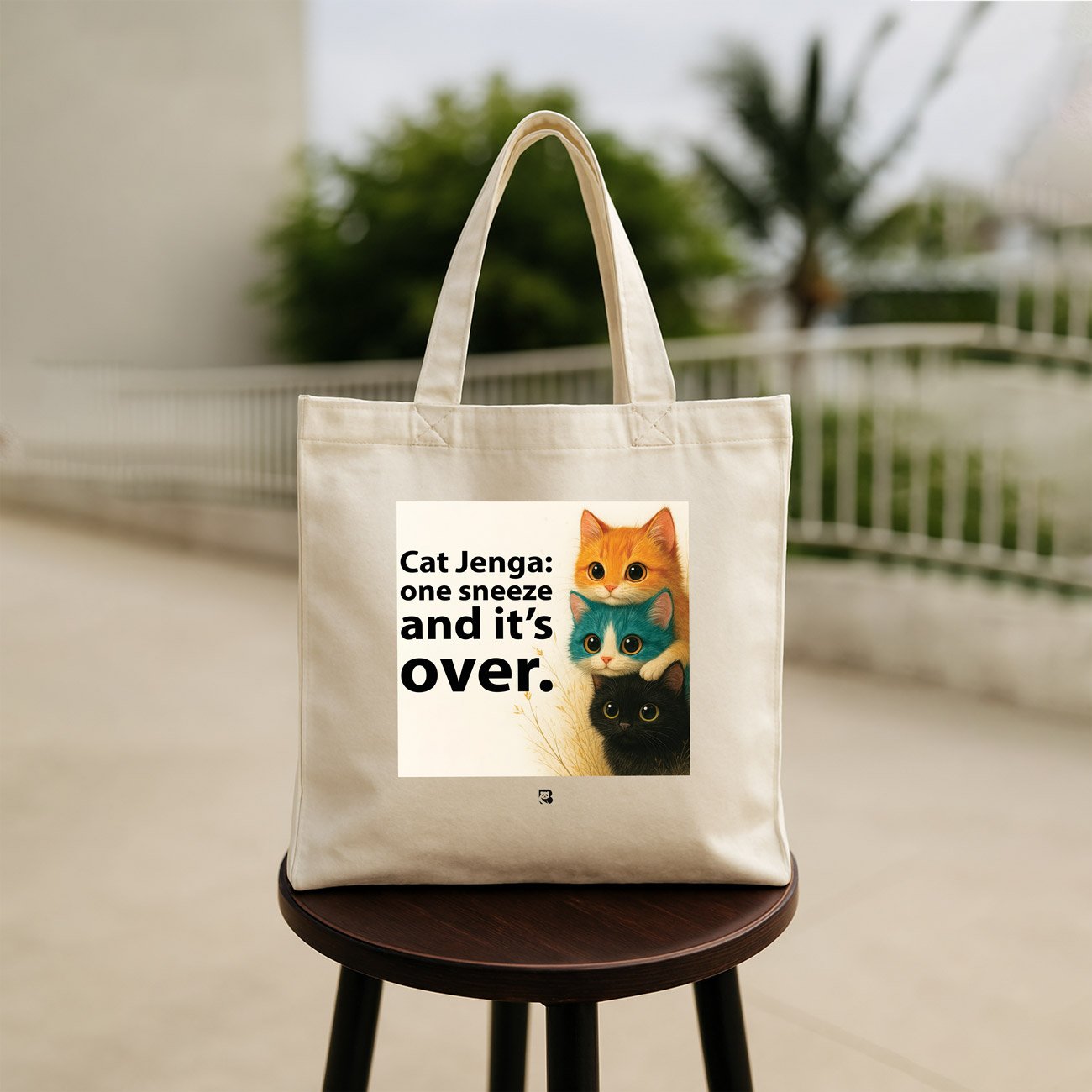 Balance is an illusion and these cats are living proof. In this gravity-defying design, three feline daredevils stack themselves like a game of Jenga, daring the universe to sneeze. The result? A visual metaphor for fragile confidence, chaotic teamwork, and the feline art of pretending everything’s fine.